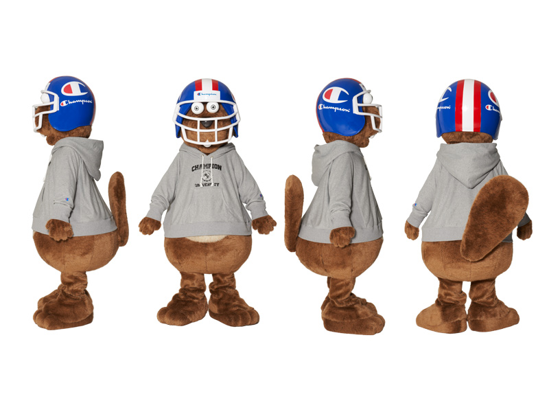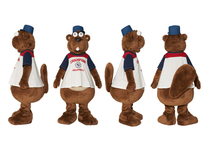 D.K.S.G. planned and designed a mascot of CHAMPION UNIVERSITY, a beaver with adorable buck teeth and a big tail. It comes from NY, the hometown of CHAMPION with a motto, "YOU CAN DO ANYTHING YOU WANT!" The beaver is a huge fan of American football. Its eyes shine during the night. The mascot's name has not known yet. Sometimes, it appears at the direct shops and/or nationwide CHAMPION corners.