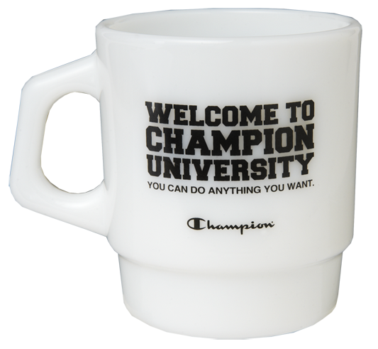 貯まったポイントは、オフィシャルEC サイトの割引クーポンコードと引き換えや、非売品オリジナルチャンピオン大学グッズ①CHAMPION UNIVERSITY オリジナルTシャツ(T1011の後染め加工)、②CHAMPION UNIVERSITYマグカップーFirekingー、③CHAMPION UNIVERSITY大学ノートプレゼントに応募が可能。