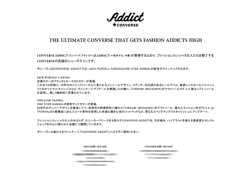DEKISUGI created press release for the seasonal visuals of "CONVERSE ADDICT", which is premium shoes line of the converse, for spring 2021.