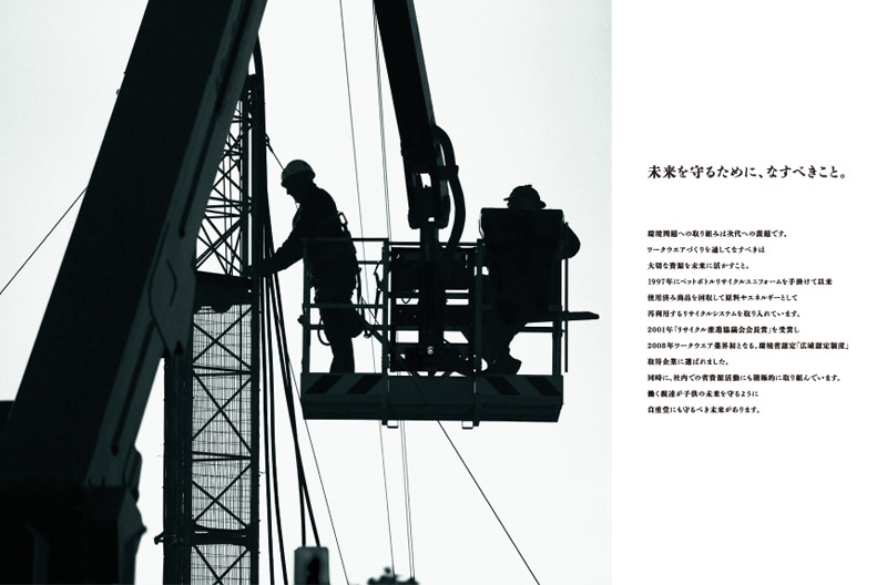 2010年秋冬シーズンに引き続き、業界大手の信頼性とプライドを訴求することを目的に、自重堂の企業広告とJAWINのシーズンビジュアルの企画・ディレクションを担当。