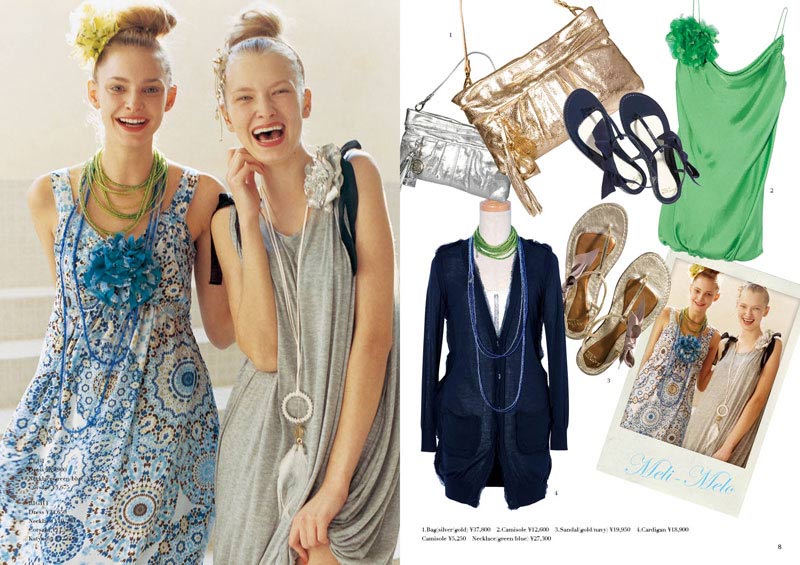 Theme:”MELI-MERO〜ごちゃまぜ〜” 2011年春夏シーズンカタログ、WEB用画像、広告ビジュアルを制作。 メンズとレディスでカタログのストーリーを連動させ、ブランドの世界観を統一。 男の子の目線、女の子の目線、対になるページが存在するなどの仕掛けを入れて構成。