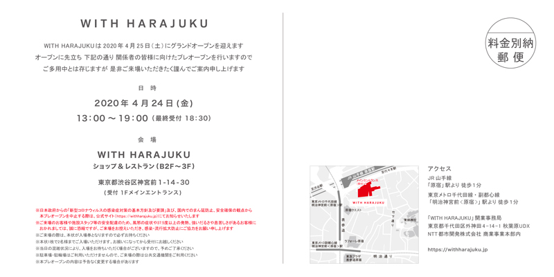 「WITH HARAJUKU」のグランドオープンのインビテーションとリーフレットをデザイン。
